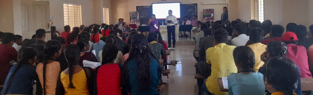 Students at Govt. PU College, T Narasipura, Mysuru, and were addressed about the disease and facilities available for treatment at the government set-up and how they can reach out for guidance and support from the DTO and NTEP staff. Students were also encouraged to become volunteers and spread awareness with the motto“ Each One Aware Five” and “Yes, We Can End TB”.