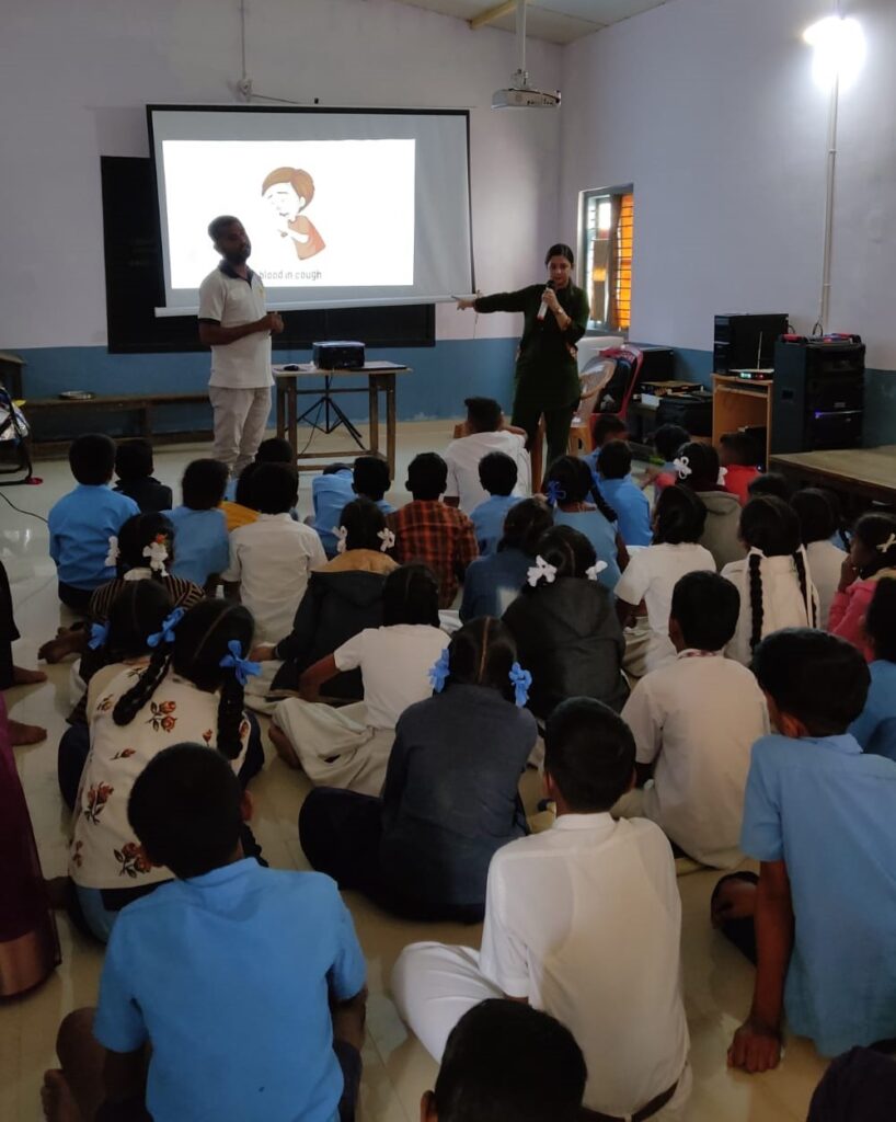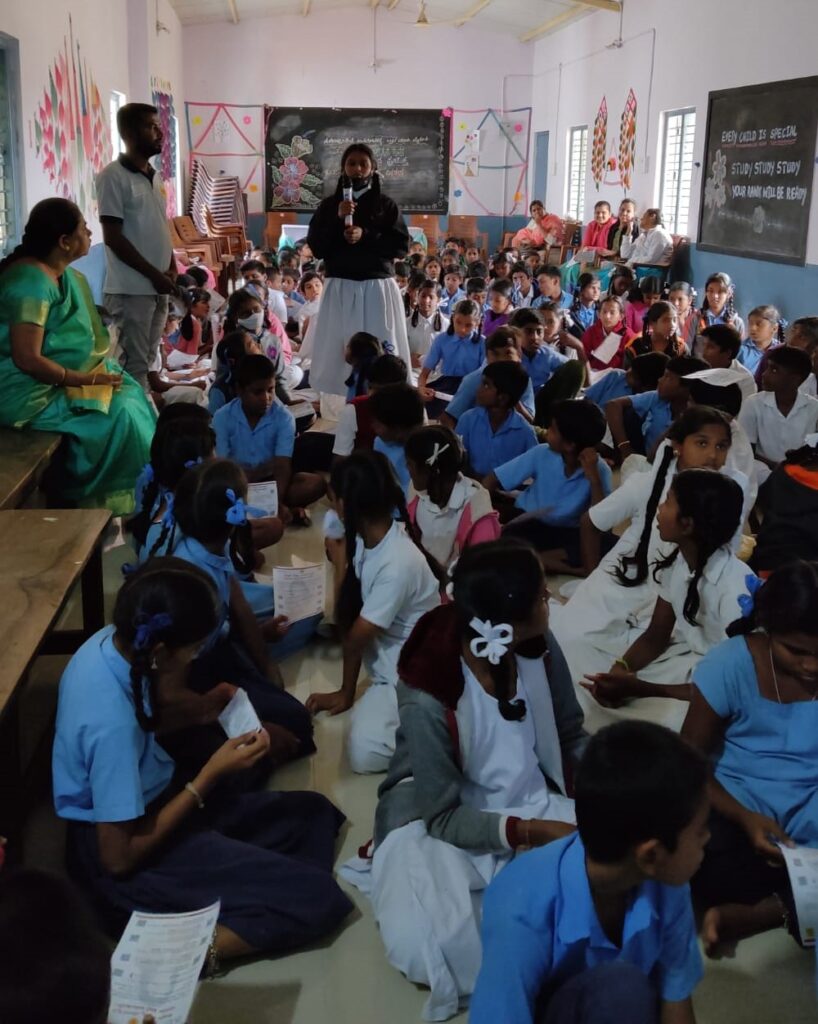 TB awareness activity was conducted at Kyathamaranhalli School by Assistant Consultant Sadaf Ahmad. Students were sensitised about TB symptoms, the spread of TB infection, Treatment of TB provided by NTEP staff. NTEP staff contact details were shared with the students. IEC Pamphlets were distributed.