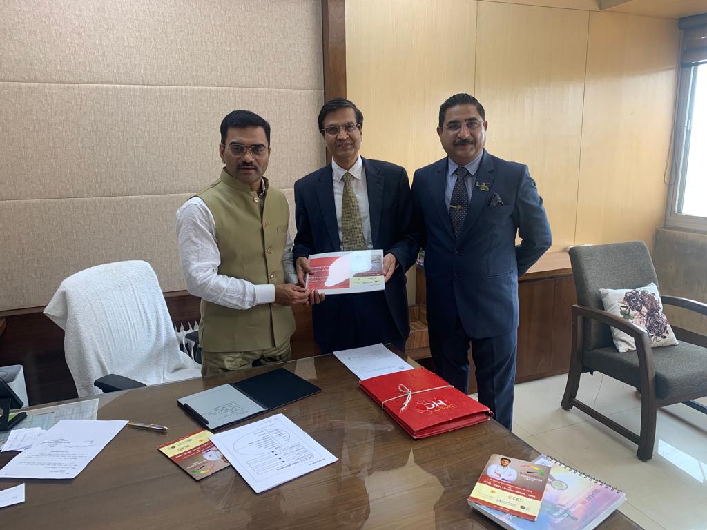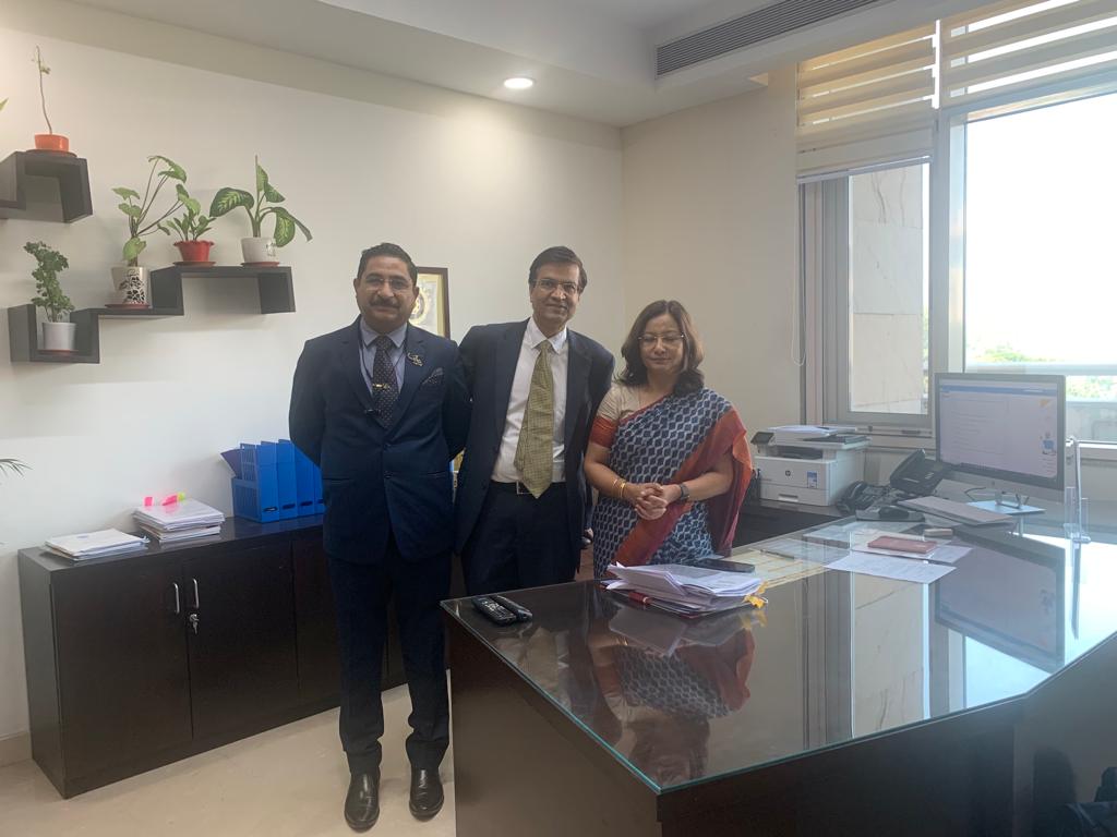 Dr. Manoj Jain and Cmd. Raman Arora meeting with MP Principle Secretary of Medical Education Caralyn Khongwar Deshmukh IAS, in Bhopal