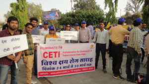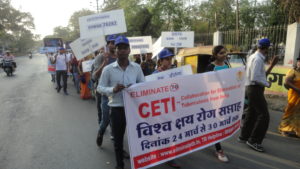 CETI participated in a TB awareness rally on eve of World TB day which is organized by Revised National TB Control Program’s officials, District TB Officer, Indore Dr VIjay Chhajlani Members of Vakalpik chikitsa paddhati Vikas sanstha, India, Indian Medical Association, Indore chest society, VHAI, T. B. Relief society DAPCU and others participated in it from MYH to Madhurmilan square at madhur milan square candles were put in memory of died TB patients By Shri Kamal bhai chairman MP minority commission, Dr Dilip Acharya, Civil surgeon Indore, Dr VIjay Chhajlani and others.
